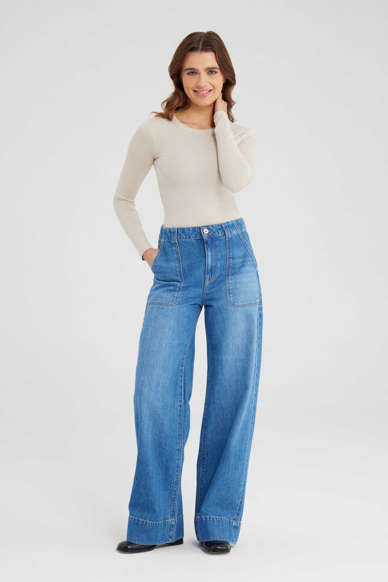 Wat een prachtige jeans deze Lili Medium Blue van Cup of Joe. De jeans is high waist, heeft een wide leg en is voorzien van grove zakken aan de voorzijde. Prachtig.