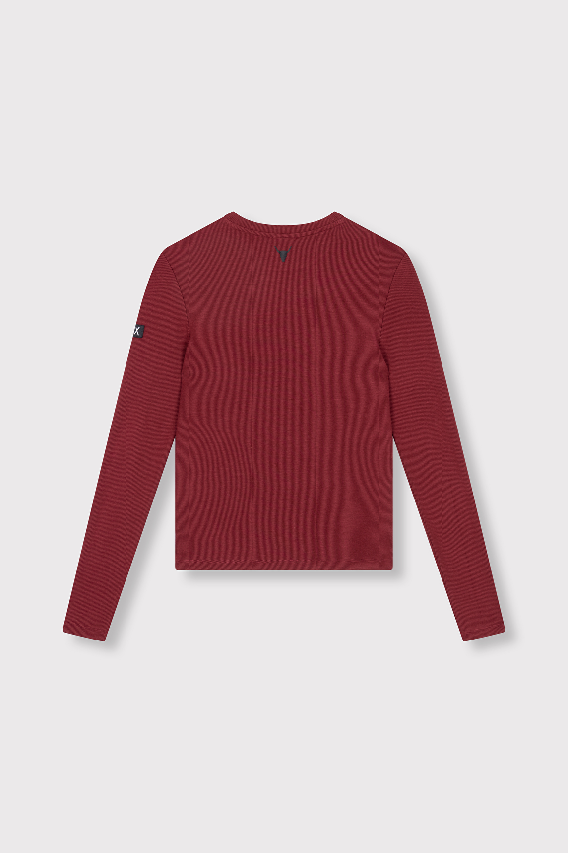 Wauw! Prachtig deze bordeaux rode longsleeve top van Alix the label. Een heerlijke basic die je jarenlang kan dragen.